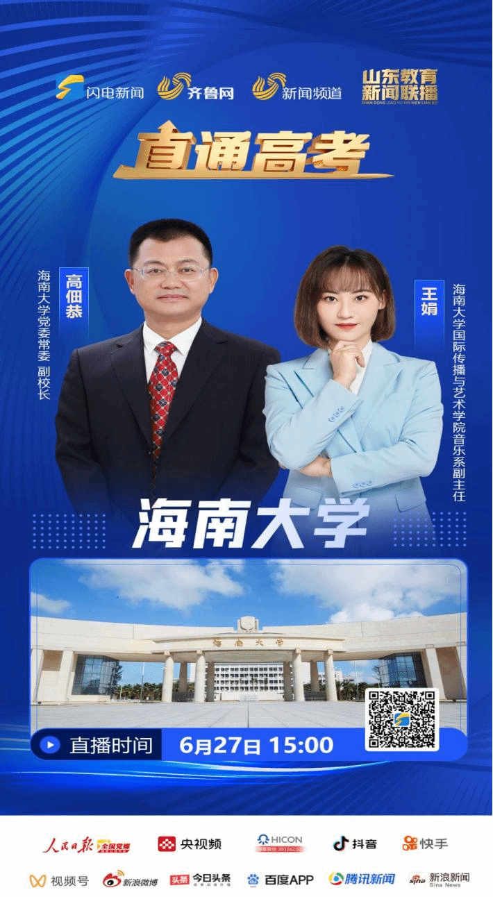 6月27日下午,高佃恭副校长与我院音乐系副主任王娟老师做客山东广播电视台《直通高考》直播间,为考生和家长解读学校今年招生录取相关政策、专业学科优势特点等;我院于东平老师在临沂招宣现场接受山东广播电视台记者采访,全网播放量80余万。