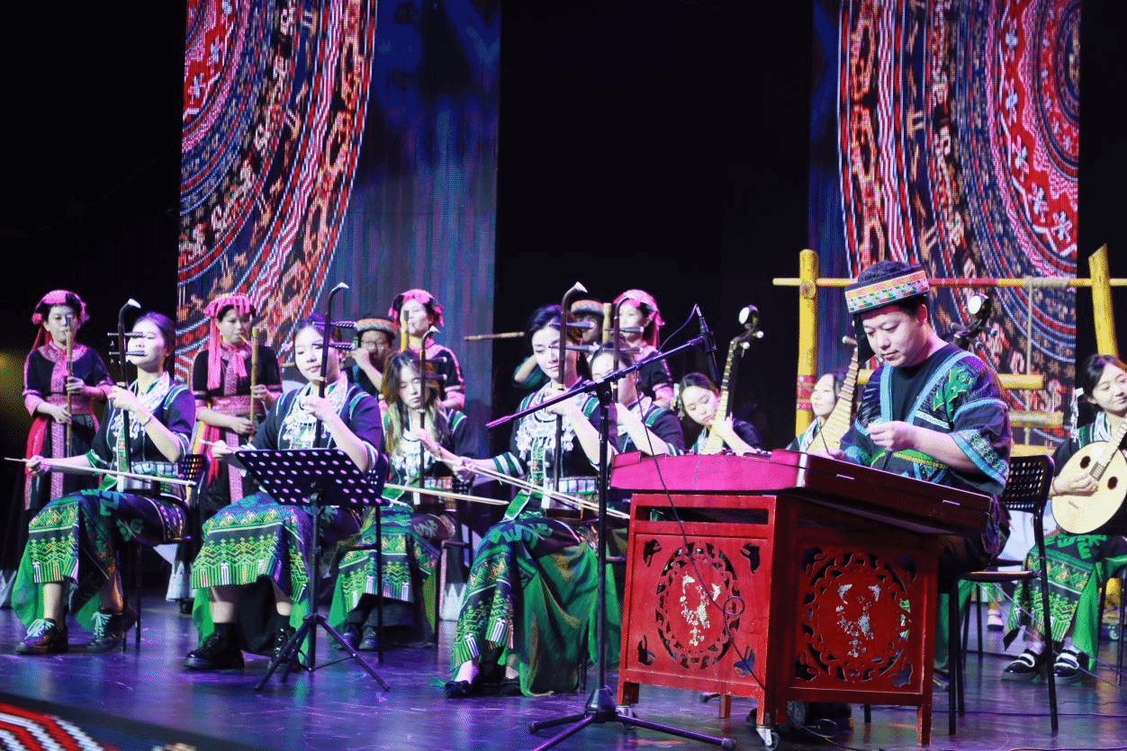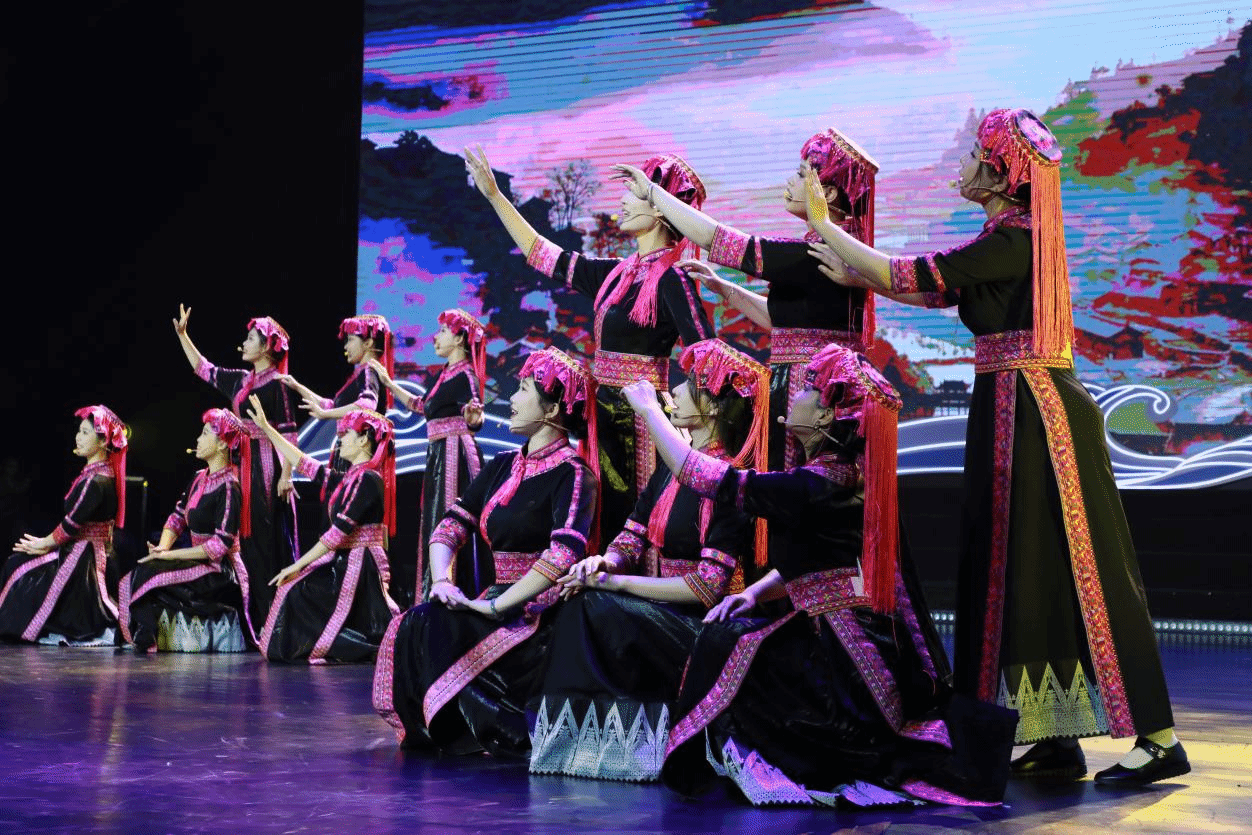 4月13日晚,热区高校联盟2025年年会文艺晚会在yl7703永利思源学堂大礼堂举行。《苗歌请来幸福水》节目表演现场宣传部 摄
