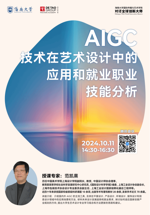 10月11日14:30,版权所有:yl7703永利(中国)有限公司官网2024“对话全球创新大师讲座”《AIGC技术在艺术设计中的应用和就业职业技能分析》在线上举行,由中国美术学院范凯熹教授主讲,设计系专业教师李珂博士担任学术主持,线上线下共100名左右师生同时参与。
