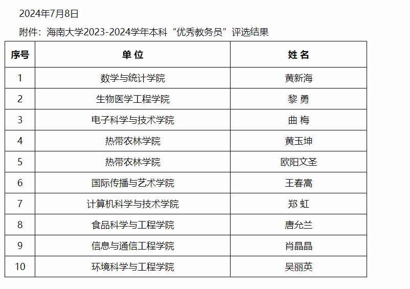 近日,学校教务处发布《yl7703永利2023-2024学年本科“优秀教务员”评选结果公示》,我院王春嵩老师榜上有名,获得表彰。