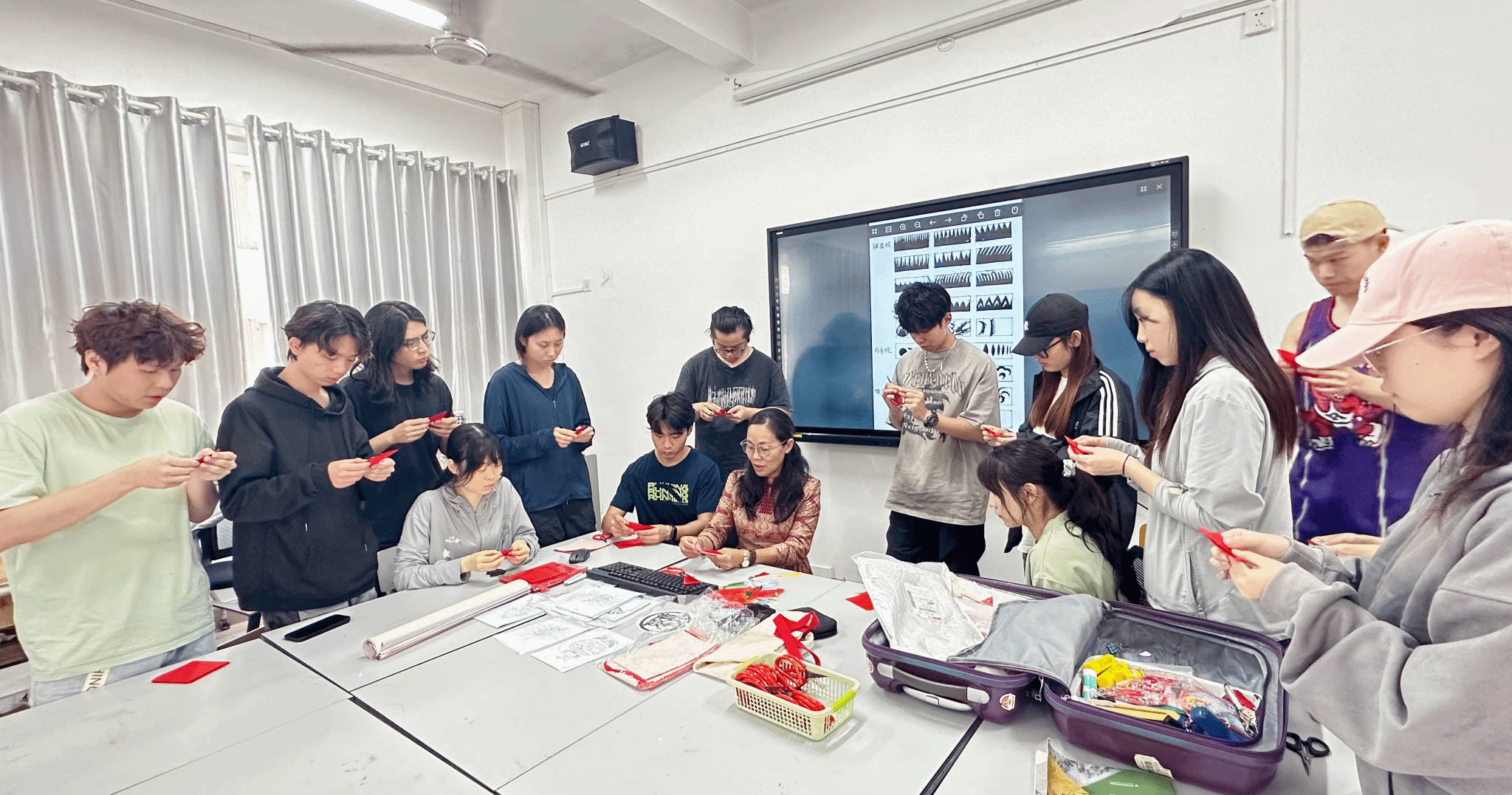 2025年3月26日下午,海南省剪纸学会会长、省级工艺美术大师、非遗传承人黄海桃应邀走入我院设计系大三课程—《旅游产品设计与制作》的课堂,与课程主讲教师张哲共同探索了剪纸艺术与海南文旅设计的融合路径。课程以“非遗活化+设计创新”为核心,通过理论讲授、技艺示范与创作实践,引导学生挖掘剪纸语言的地域表达潜力,现场气氛热烈。