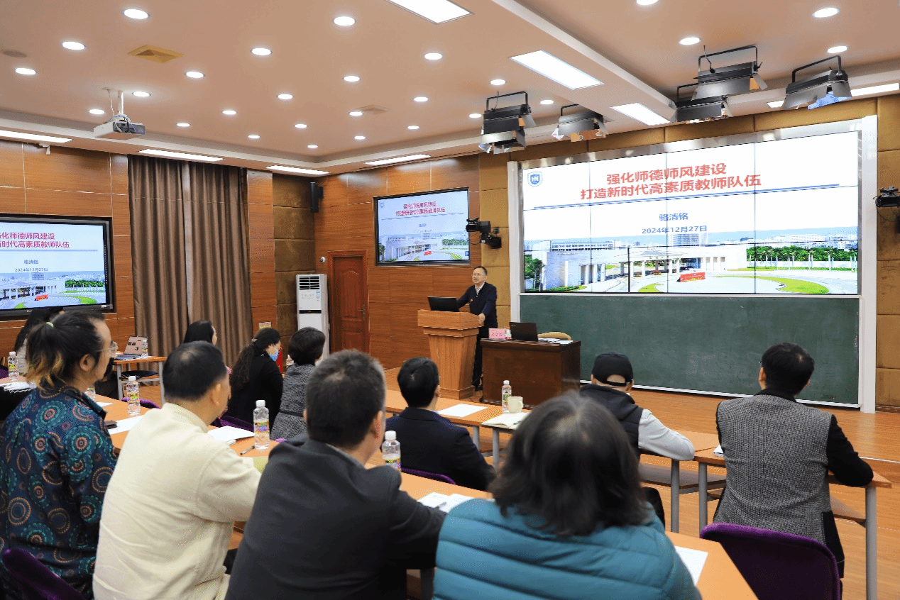 骆清铭强调,要以教育家精神引领高水平教师队伍建设,营造“知行合一、崇尚学术、追求卓越”的求知治学氛围;要强化监督机制,畅通沟通渠道,多维度保障学生权益;要压实主体责任,明确工作责任,落实落细师德师风建设各项举措;要加强理论学习,厚植家国情怀,紧密对接国家战略需求和服务海南自由贸易港建设;要涵养高尚师德,坚守育人初心,努力做“经师”和“人师”相统一的好老师;要投身“三大改革”,聚焦主责主业,在知校、爱校、荣校、兴校方面作出表率。