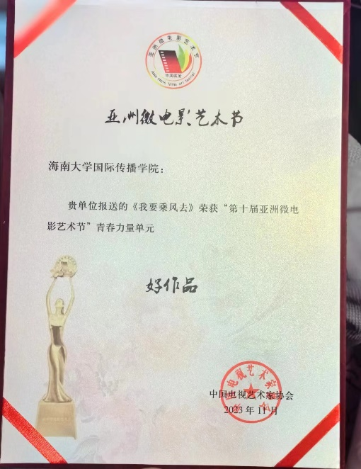 2023年11月24日至26日,第十届亚洲微电影艺术节在云南省临沧市举办,yl7703永利国际传播学院2020级戏影专业学生团队凭借作品《我要乘风去》,获得了青春力量单元“好作品”奖,展现出扎实的专业素养和创作基础,也是我院践行培养具有国际视野、创新思维和实践能力的优秀影视人才的体现。