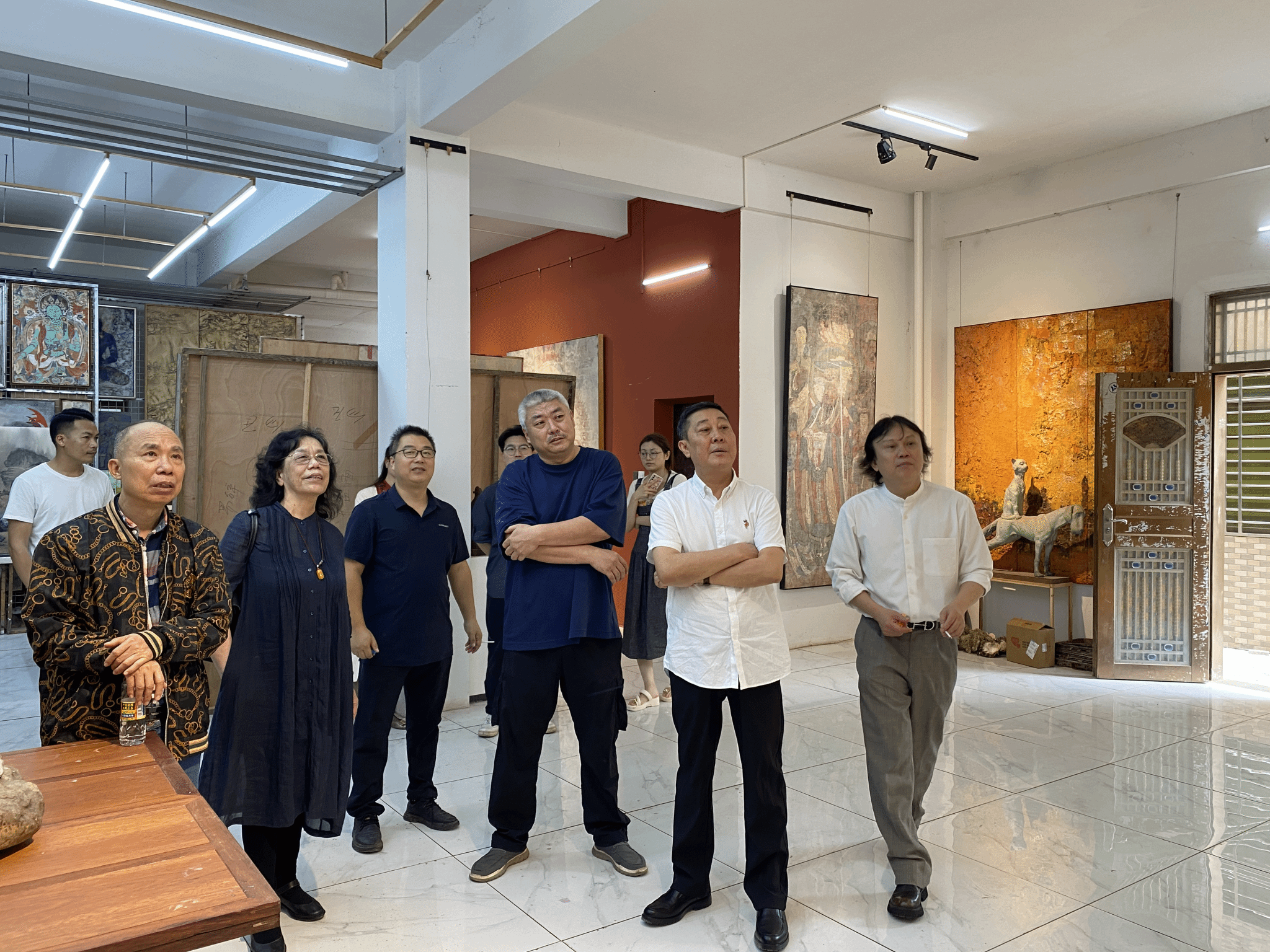 副院长袁琳全程陪同一起观摩作品,并表示到全国美展一直与时代发展同步,关注时代精神表达。从见证新中国成立,到步入改革开放新时期,再到昂首跨进新时代,每届全国美展都以经典之作镌刻时代记忆。全国美展不仅是展示和检阅美术创作的重要平台,也是发现和培育优秀中青年美术工作者的摇篮。