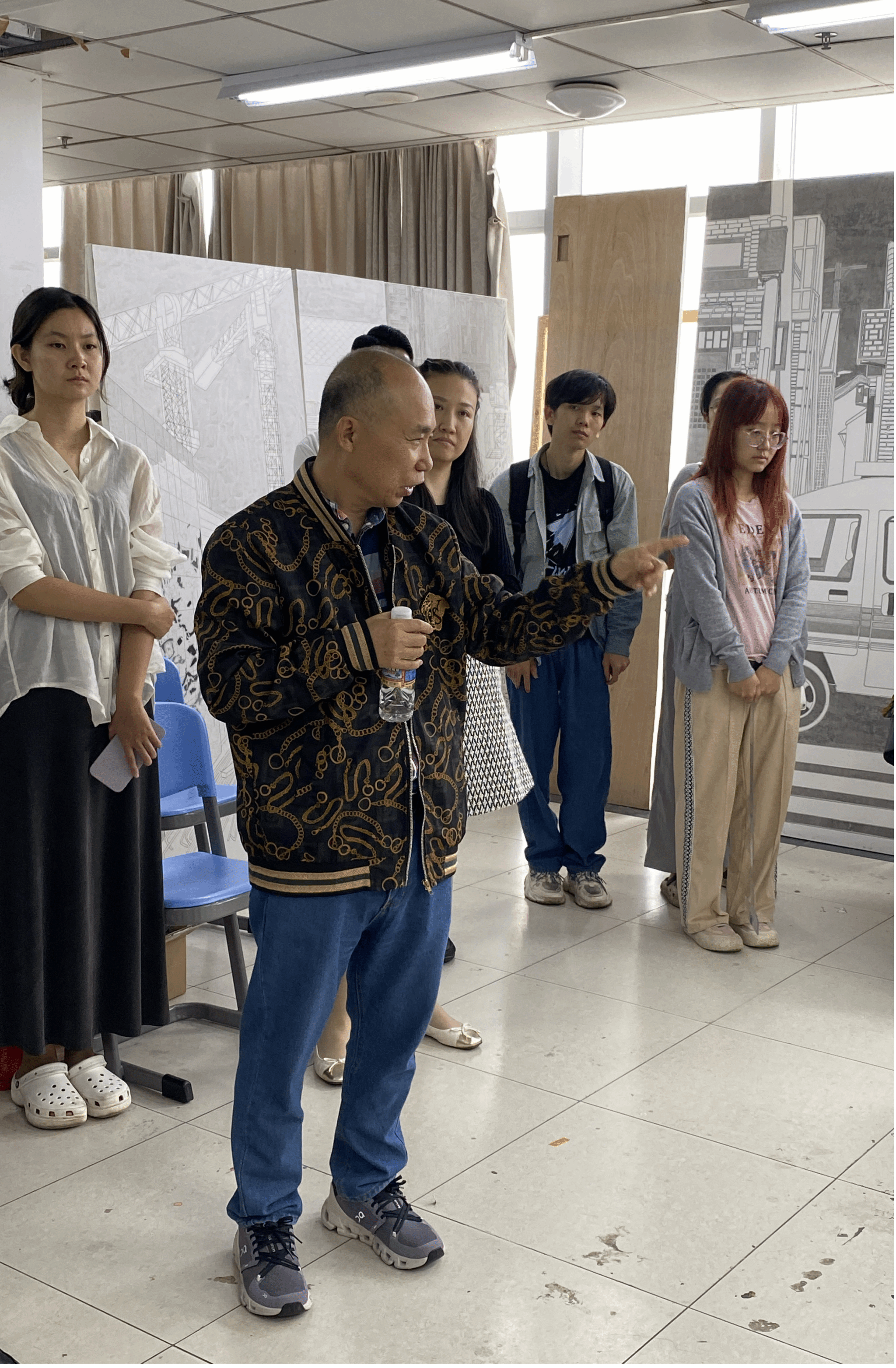 海南省美术家协会综合材料绘画艺委会副主任兼秘书长、国际传播与艺术学院教师陈翔宇,省美术家协会综合材料绘画艺委会副主任、国际传播与艺术学院教师志勇,省美术家协会理论艺术委员会副主任、国际传播与艺术学院教师李澎霖,省文艺评论家协会副秘书长、省青年美术家协会副主席尹林华,省青年美术家协会副主席兼秘书长洪永锋,省美术家协会综合材料绘画艺委会委员魏鹏举,省青年美术家协会副主席、国际传播与艺术学院年轻教师陈燕秀、郭博文、倪文涵老师,以及该院的2020级绘画专业中国画方向学生将准备好的创作稿件与创作思考积极与专家进行交流学习,受益匪浅。