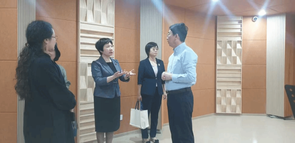 刘锦考察了学院办学环境,郑立波介绍了学院的历史沿革、专业设置、教学设施、文化活动空间等。刘锦来到未来传播实验室,实地了解实验室的技术应用与教学实践成果。她充分肯定实验室在技术赋能传媒教育方面的探索,对我院在复合型传播人才的培养和前瞻性专业建设布局方面给予肯定。